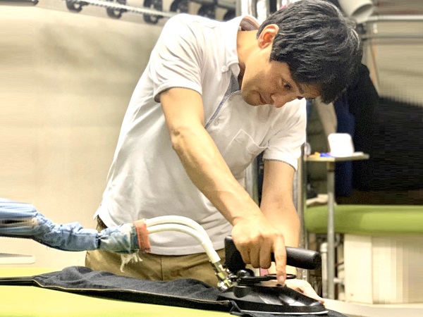 DXコース、プラチナコースは国家資格を有している職人が担当し、裏地からしっかりと仕上げていきます。ふっくら仕上げるところと、ピシっと仕上げるところ、衣類の特徴をおさえて完璧な状態に近づけていきます。