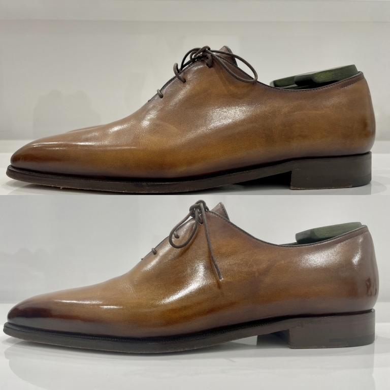 当社が得意とするブランド靴は以下の通りです。ベルルッティ、コルテ、オーベルシー、ジョンロブ、エドワードグリーン、トリッカーズ、クロケット&ジョーンズ 、チャーチ、サントーニ、J.Mウェストン、パラブーツ、オールデン、その他、各メゾンにてビスポーク(オーダーメイド)で仕立てられた靴。