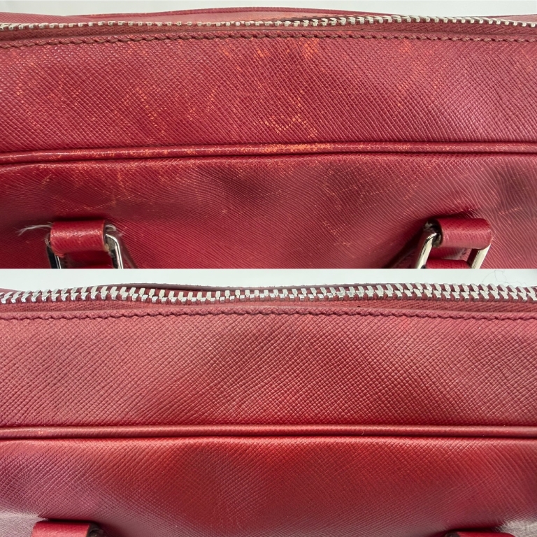 匠カラーリングは、元の色味を丁寧に復元する加工です(同色仕上げのみ対応)。素材全体を均一に染め上げるため、ステッチ(縫い糸)部分も染まります。色の変更(カラーチェンジ)は対応しておりません。クロコダイル素材は施工対象外となります。スエード素材はカラーリングに対応しておりません。持ち手部分は、剥離するリスクが高いため、状態が良ければ着色せずに最適な保湿メンテナンスを行います。