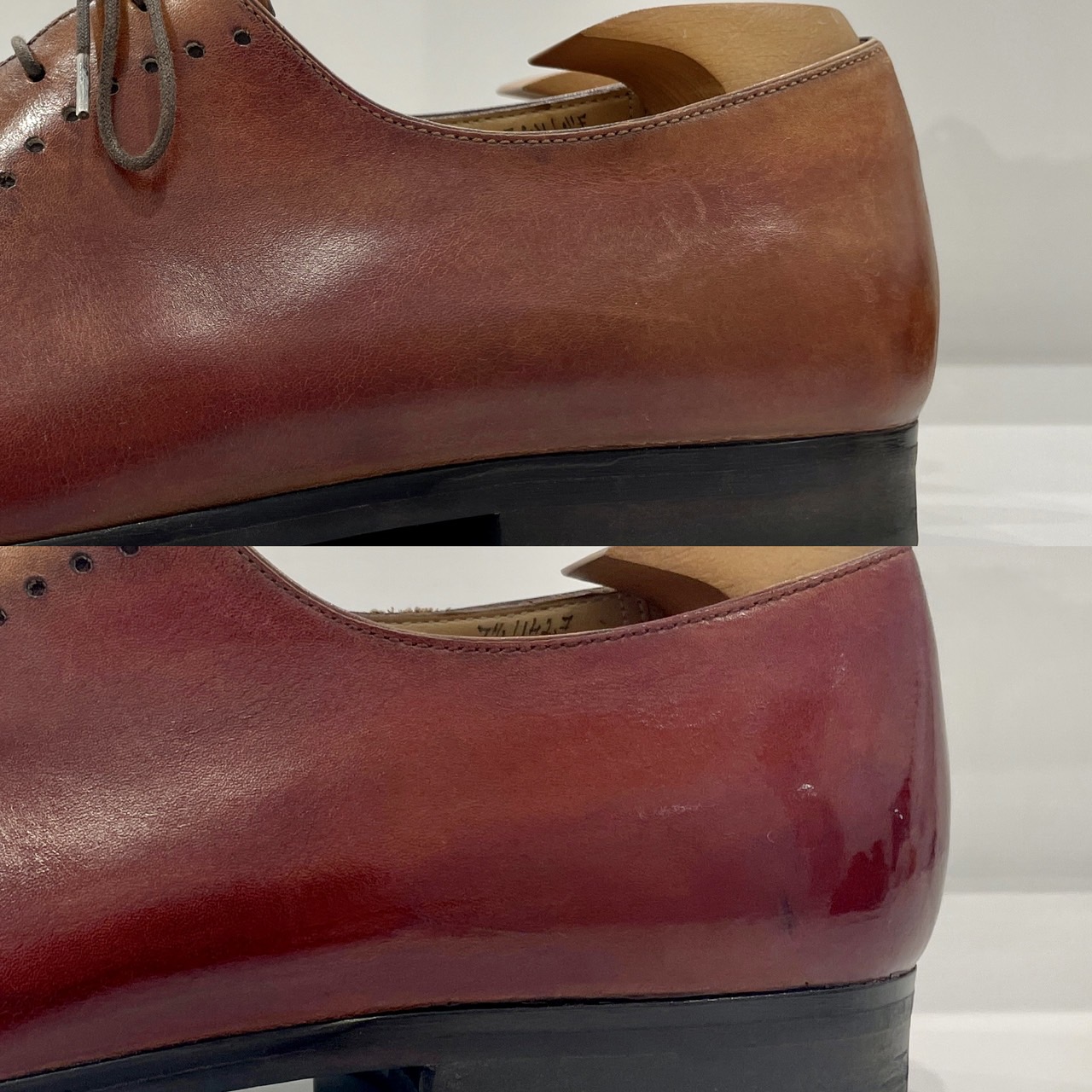 軽微な擦れキズなどは靴磨きで綺麗になります。