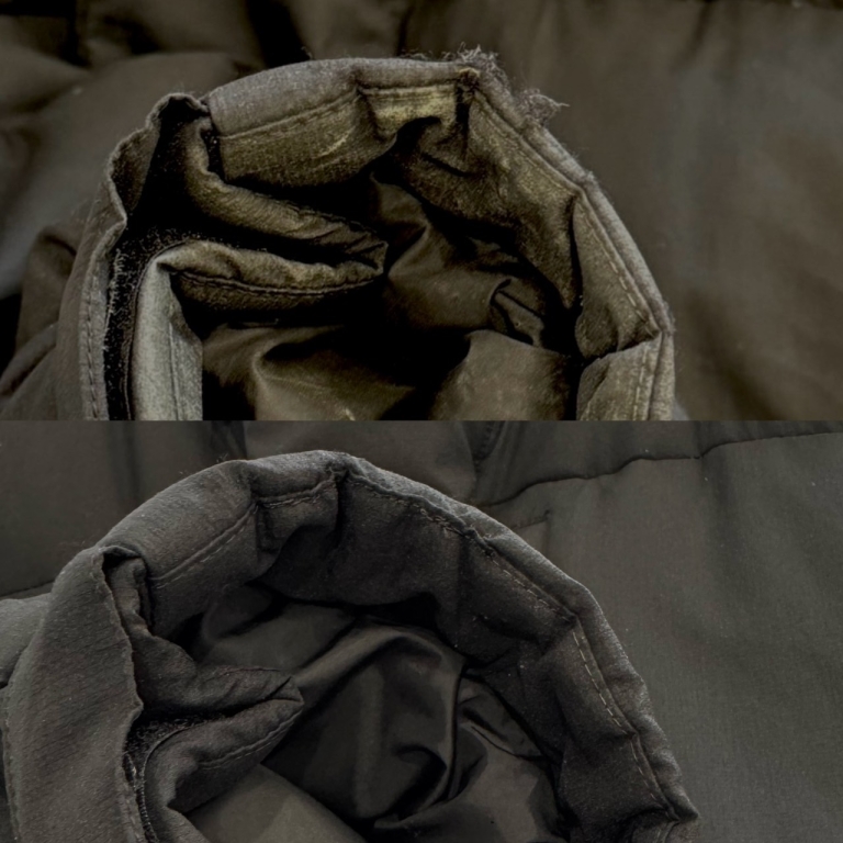 商品ごとに使用されている素材や縫製に特徴があります。弊社では毎年10,000点以上のTHE NORTH FACEを取り扱っており、襟・袖を丁寧にブラッシングすることはもちろん、ダウンのボリュームを復元し、購入時以上のふんわりとした立体感を出す「FILL POWER UP技術」があります。
